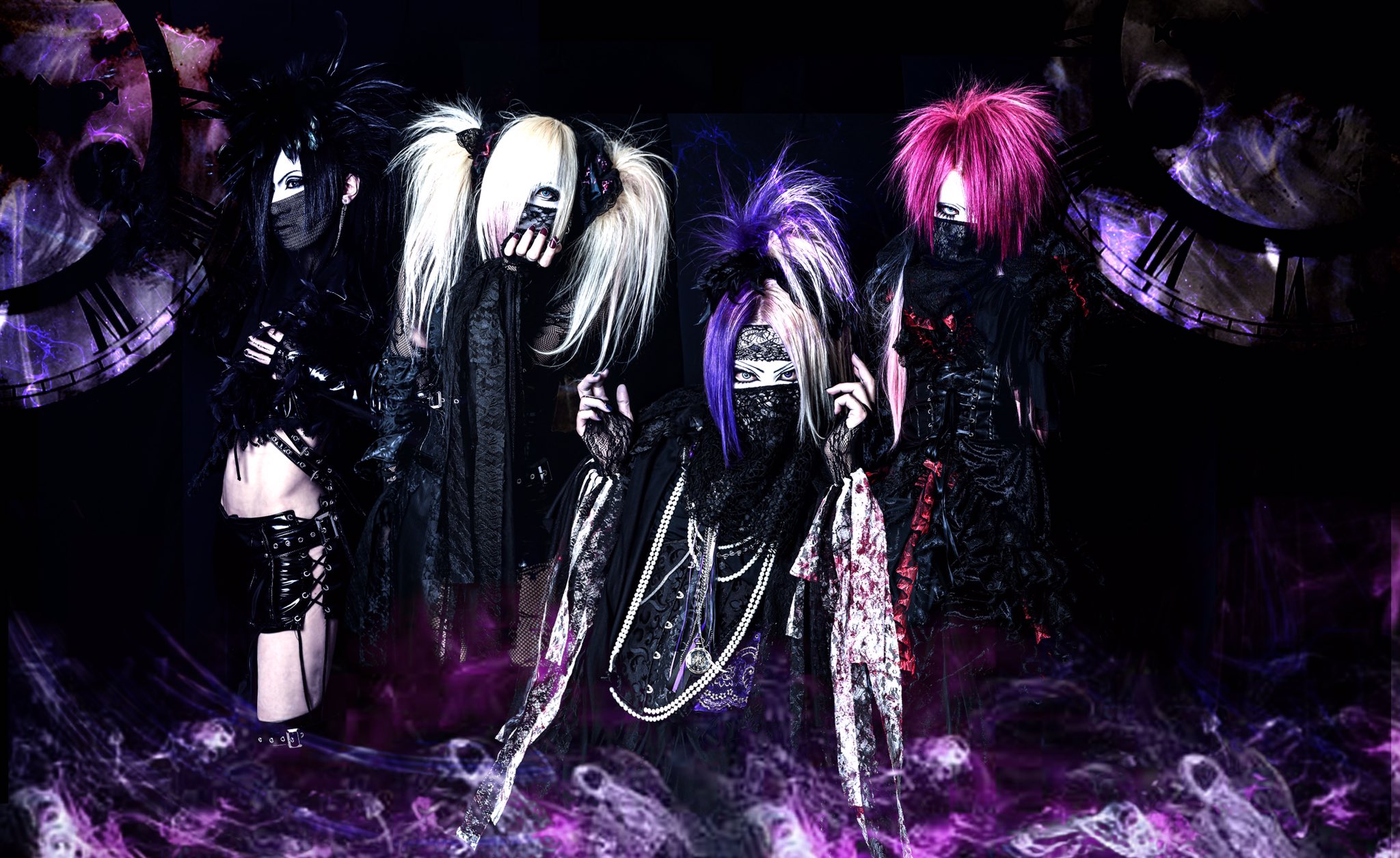 V. Kikyo (祈狂)G. Nazuki (渚月)G. Makoto (魔琴)La'veil MizeriA (la-veil-mizeria) group photo for Soukoku