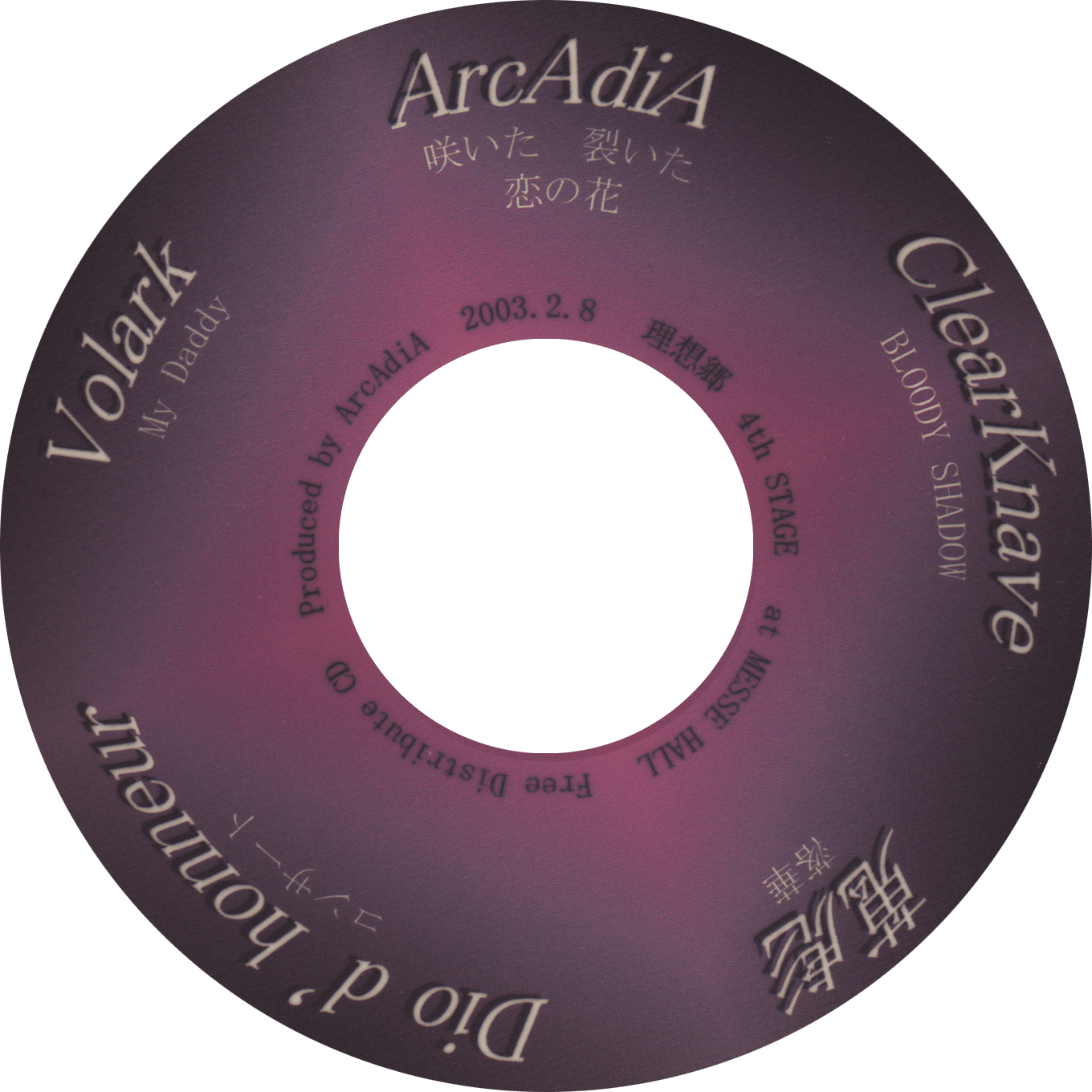 This omnibus CD was freely distributed at ArcAdiA's sponsored event, Risoukyou 4th STAGE (理想郷 4th STAGE), on 2003-02-08 at Sapporo (札幌) MESSE HALL.