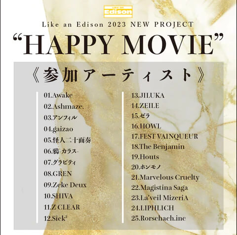 The "HAPPY MOVIE" project was two-fold: each of the featured bands also created a YouTube short on the Like an Edison YouTube page, and then created different but longer content for the DVD. However, the store's site does note that the content submitted by ZEILE, SHIVA, and Marvelous Cruelty did end being the same as their YouTube shorts.